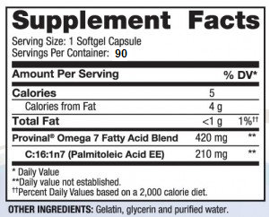 Daily dosage is 420 mg/day (210 mg palmitoleic acid), in one small gelcap.